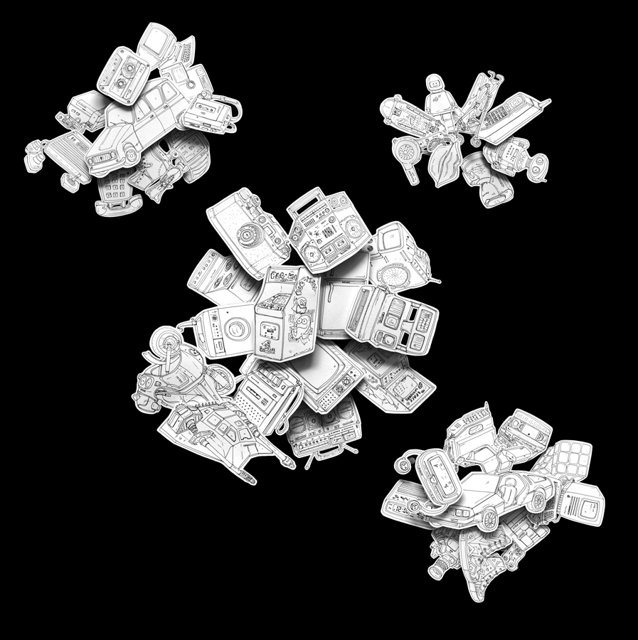 sin mayúsculas años 80 collage tridimensional tinta sobre papel 64 x 64 x 4 cm