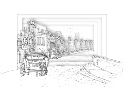 Dibujo túnel tinta sobre papel 24 x 30 x 31 cm