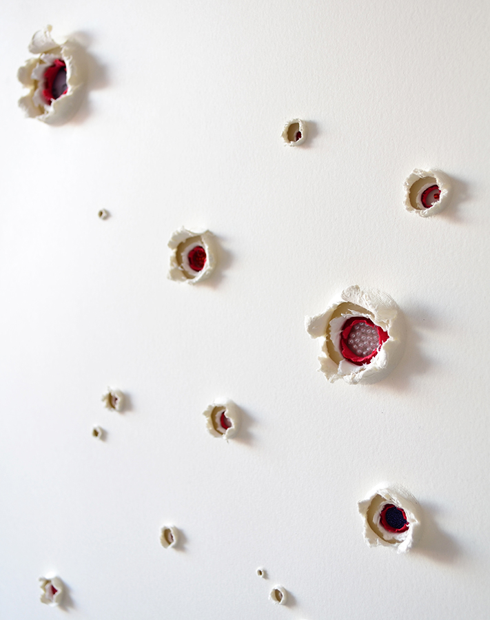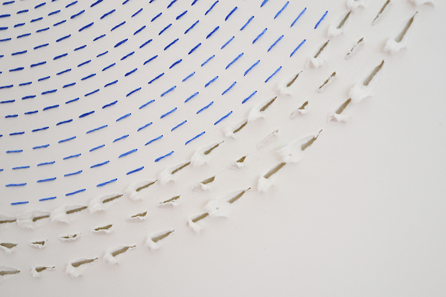Así emprendí un viaje de aprendizaje por el mundo del bordado y de sanación por medio de textos que escribía a mi abuela buscando respuestas. Respuestas que se convirtieron en imágenes. Estas piezas nacen de una historia de violencia, sin embargo, su objetivo no es hablar literalmente de ésta; su objetivo esta enfocado al entendimiento de la sensibilidad humana. Las piezas analizan el miedo, el ser invadido, borrado, herido, para luego ser zurcido y sanado.