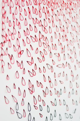 En un lago rojo y oscuro nos sumergimos Hilo y acrílico sobre papel de algodón 73 x 44 cm 2017