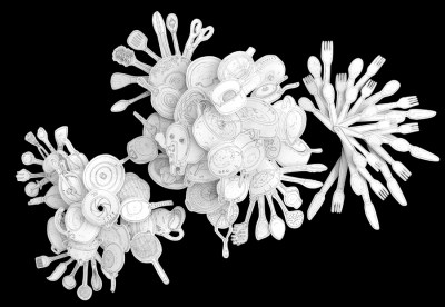 Collage tridimensional Tinta sobre papel 75x95x10cm